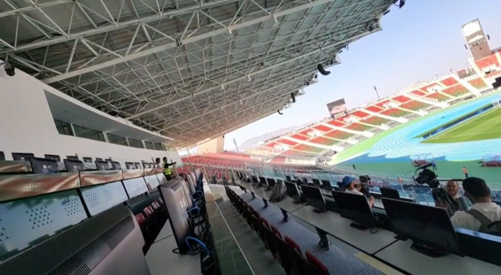 وخلال الزيارة الميدانية لمختلف المنابر المحلية الجهوية والوطنية، تم الوقوف على أبرز المستجدات خاصة فيما يتعلق بالشق الإعلامي، حيث جرى إعداد منطقة خاصة بالصحافة بمواصفات عالمية بداية بمرآب خاص وممر يؤدي إلى فضاء للراحة وقاعة للتحرير ثم الولوج إلى منطقة الصحافة، التي تتسع ل 198 مقعد مجهز بشاشة وشبكة اتصالات.