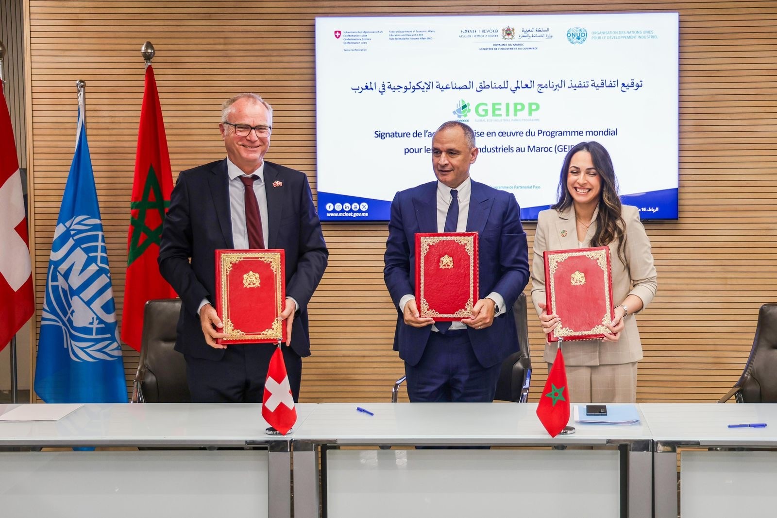 شهد المغرب خطوة جديدة نحو تطوير صناعة صديقة للبيئة وأكثر تنافسية. ففي الرباط، وقع كل من سعادة السفير فالنتين زيلويغر، سفير سويسرا بالمغرب، ووزير الصناعة والتجارة رياض مزور، والسيدة سناء لحلو، ممثلة منظمة الأمم المتحدة للتنمية الصناعية (اليونيدو) في المغرب، اتفاقية إطلاق البرنامج العالمي للحدائق الصناعية البيئية (GEIPP II).